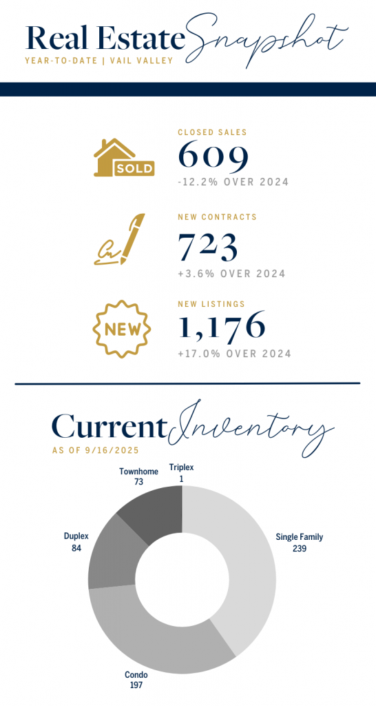 As we move into fall and prepare for ski season, these dynamics will only sharpen as holiday buyers and second-home seekers arrive with strong motivation, creating both opportunity and competition. Whether it’s a luxury estate in Vail Village, a family home in Singletree, or a slopeside retreat in Beaver Creek, navigating this landscape requires the expertise of a knowledgeable professional who can interpret the data, anticipate seasonal demand, and position each property for maximum success. Let’s connect to discuss exclusive properties and strategies to secure your place in one of the nation’s most desirable resort communities.
