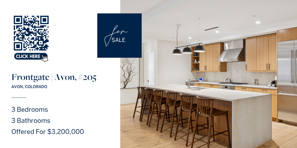 Currently the only available 3-bedroom, 3-bath residence at the coveted Frontgate | Avon, this impeccably designed residence 205 combines sophisticated mountain living with unparalleled amenities. One of the most spacious three-bedroom layouts in the complex, it features 9-foot ceilings in the inviting open-concept great room, and a generous 164 sq ft patio that opens directly onto the serene Mountainside Courtyard – an ideal setting for indoor-outdoor entertaining. Offered beautifully furnished….VIEW MORE DETAILS
