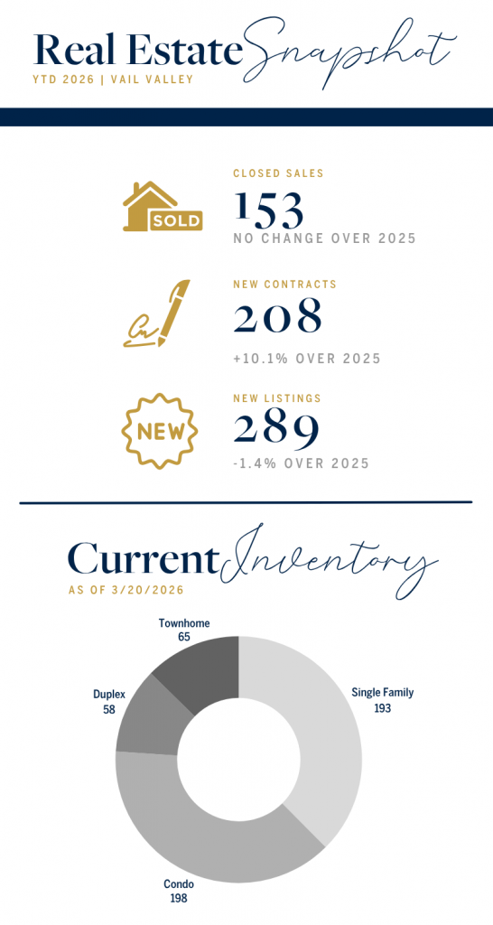 I’m going dive right in this month because there is a lot to talk about. If you’ve been trying to get a clear read on the Vail Valley real estate market lately, you’re not alone. Even after 40 years of calling this valley home and living through more market cycles than I care to count, I’ll be the first to admit: this one is keeping me on my toes.