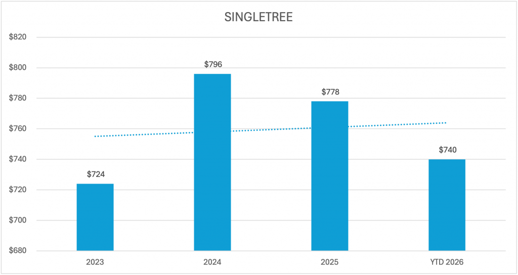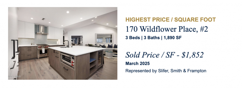 Singletree has remained relatively consistent, hovering between $724 and $796/sf over the past four years. The slight pullback so far this year to $740/sf reflects stabilization rather than depreciation. In the past 12 months, there have been 5 sales closed above $1,000/sf. This community continues to offer strong relative value compared to resort-core neighborhoods, making it attractive to buyers seeking space, views and access without the resort premiums.